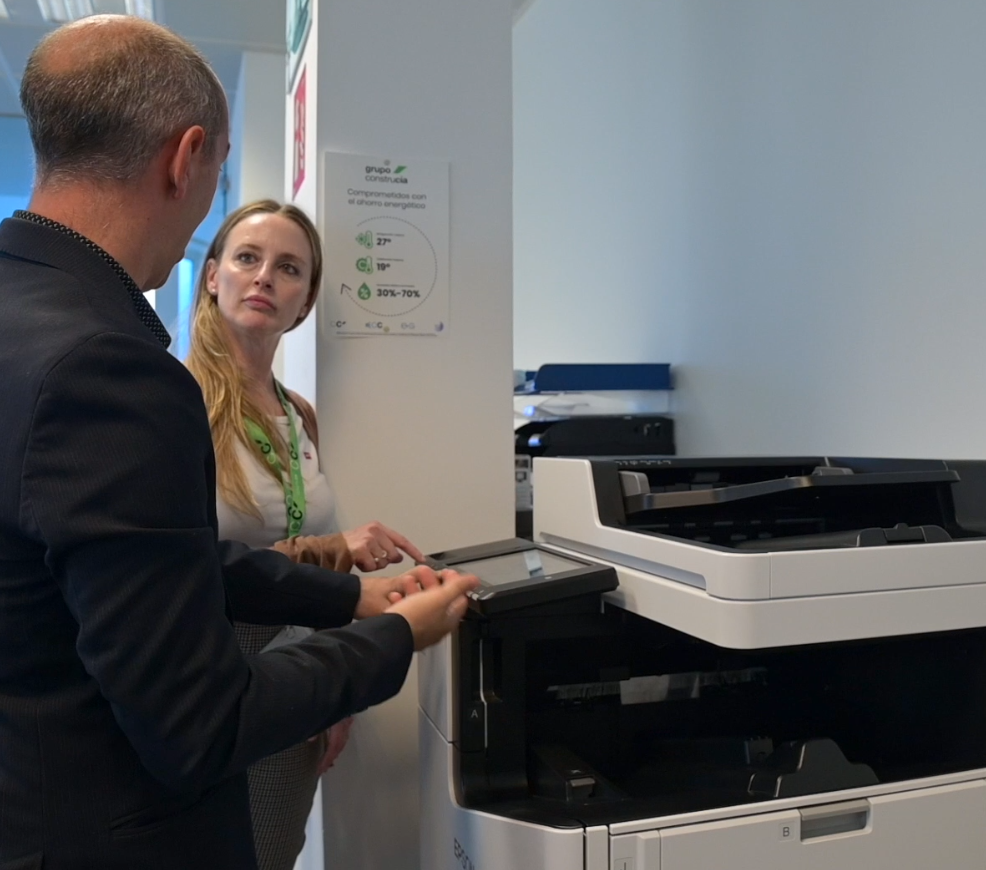 - Sostenibilidad: estas impresoras van en línea con los valores del Grupo Construcía, y además su sistema de gestión centralizada permite evitar impresiones innecesarias de los usuarios, gracias a la posibilidad de revisar las impresiones en la propia máquina cuando están todavía en línea de cola y eliminar las que no son necesarias o se rechazan. Esto evita a la compañía más del 40% de impresiones no deseadas, un dato que pretenden seguir mejorando pero que representa una clara mejoría de la eficiencia.