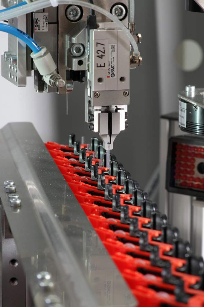Une microgouttelette exactement là où il faut. Pour répondre à cette exigence lors du pipetage automatisé des substances, une aiguille doseuse doit être positionnée précisément, même sans cible exactement définie. Cette action peut être répétée de manière efficace et économique.